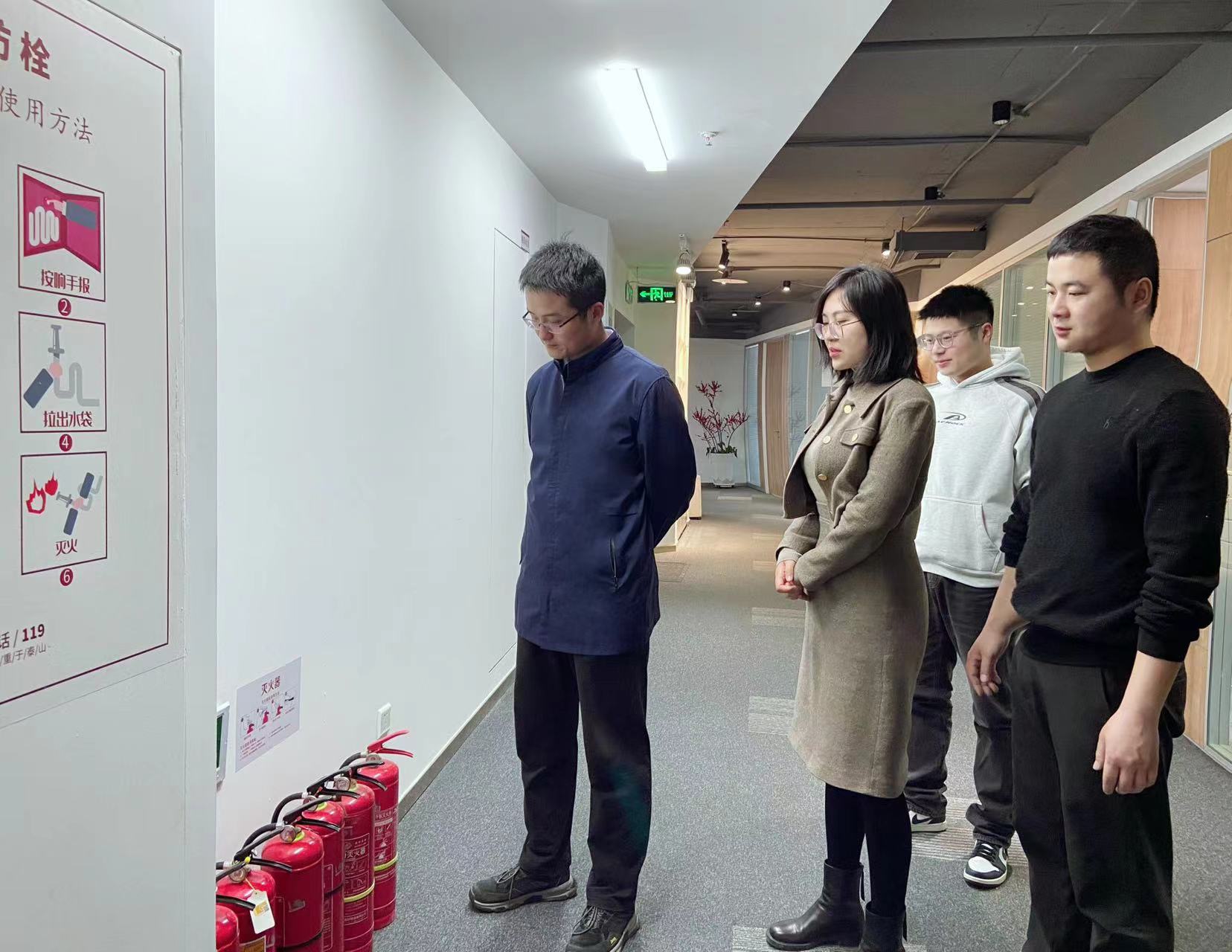 公司高管帶領相關人員檢查消防器材